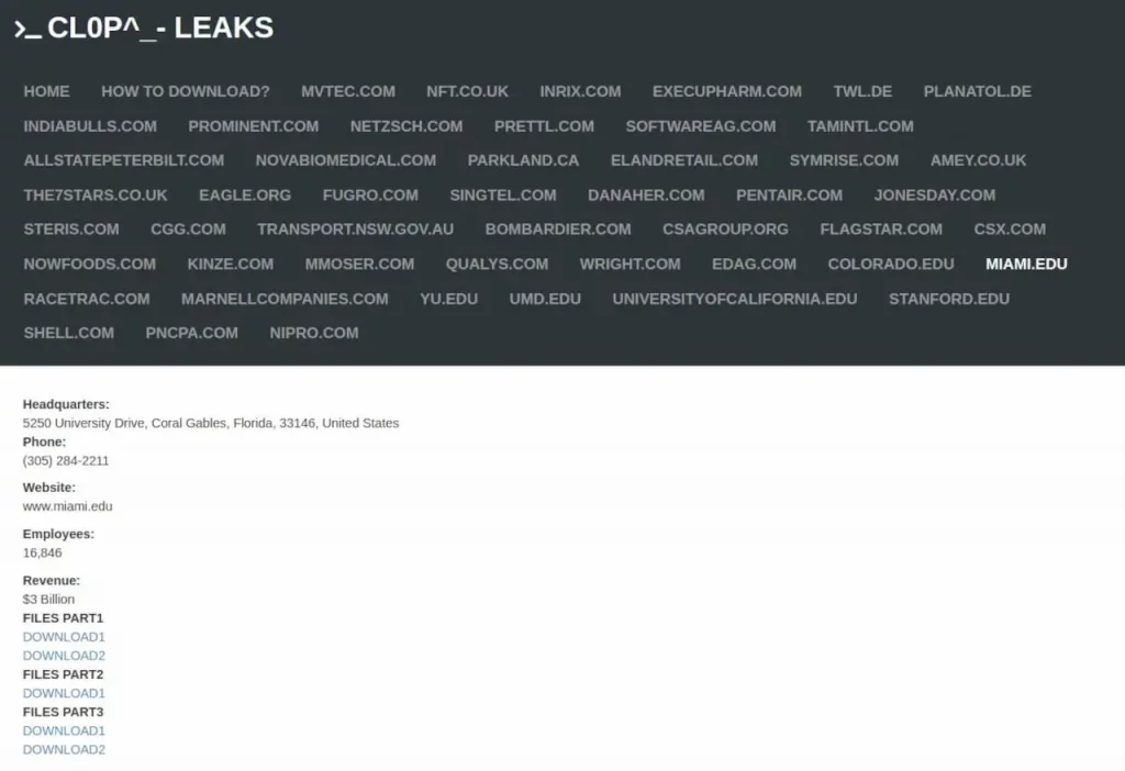 Tout commence avec la diffusion des notes, des numéros de sécurité sociale des étudiants de l’université du Colorado et de celle de Miami au début de l’année 2021. L’origine est l’application FTA (File transfer appliance) d’Accelion pour le transfert de données sécurisé. C’est un fournisseur de services de transfert de fichiers sécurisés qui permet aux organisations de partager « en toute sécurité » des documents sensibles avec des utilisateurs extérieurs à leur organisation.