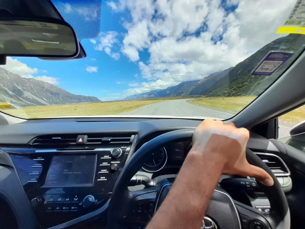 Il est quinze heures bien tassées quand il se décide à reprendre la voiture pour réaliser les 3 h 30 de route le séparant du camping de ce soir. La route est belle, les paysages sont parfois très semblables aux steppes patagoniennes, je suis à nouveau surpris par ce pays, sourit-il. Arrivé au camping, je payerai seulement quatorze dollars néo-zélandais plus deux pour la douche… « C’est la bonne affaire après le plein d’essence qui ma coûté près de 100 NZD. » (Crédits : Flavien Saboureau)